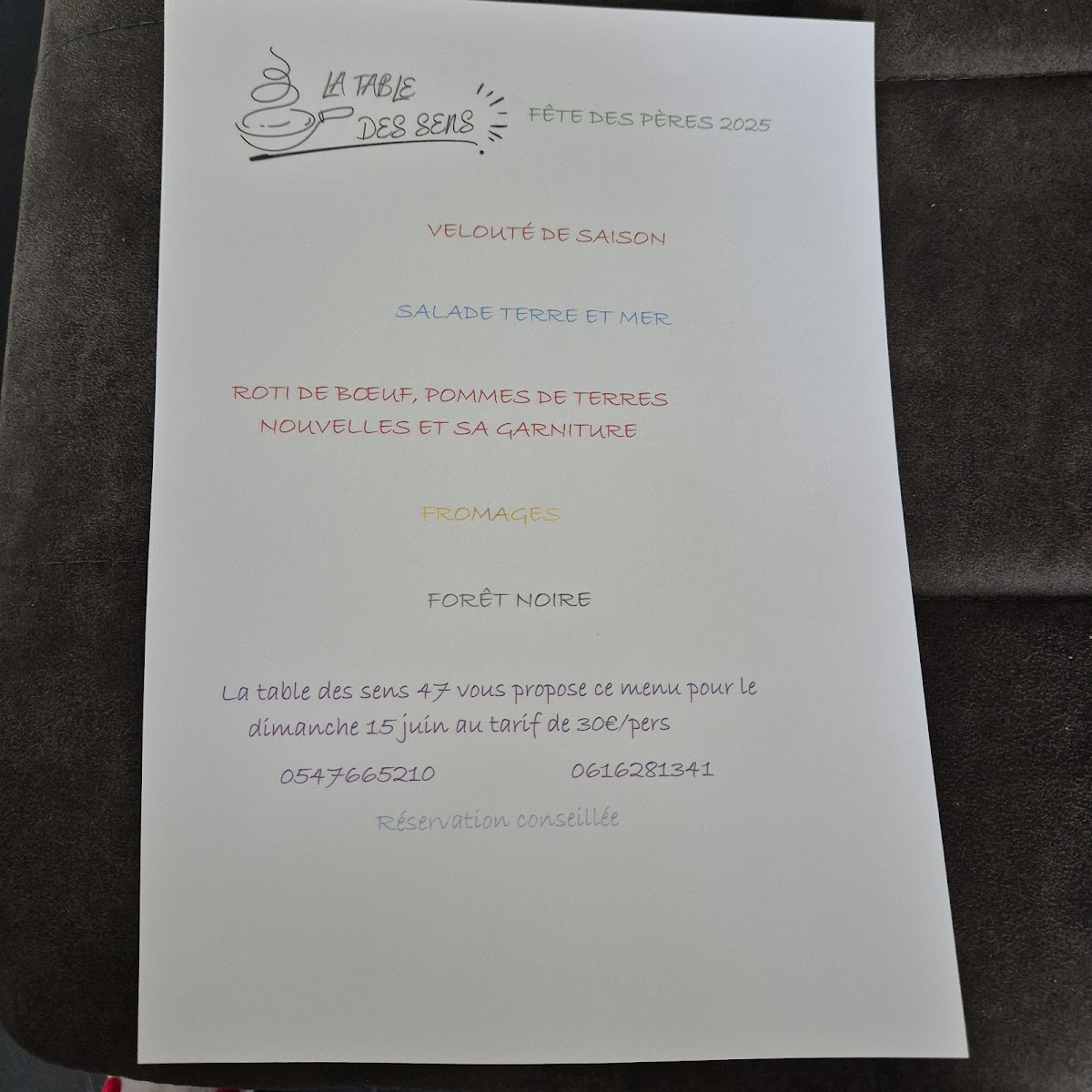 Introducing the Menu at LA TABLE DES SENS